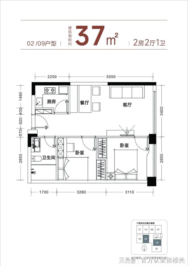 户型实用:约37㎡的小两房户型,实际套内使用面积接近54㎡,空间利用率较高,能满足基本的居住需求,对于小家庭或者投资者来说很有吸引力。