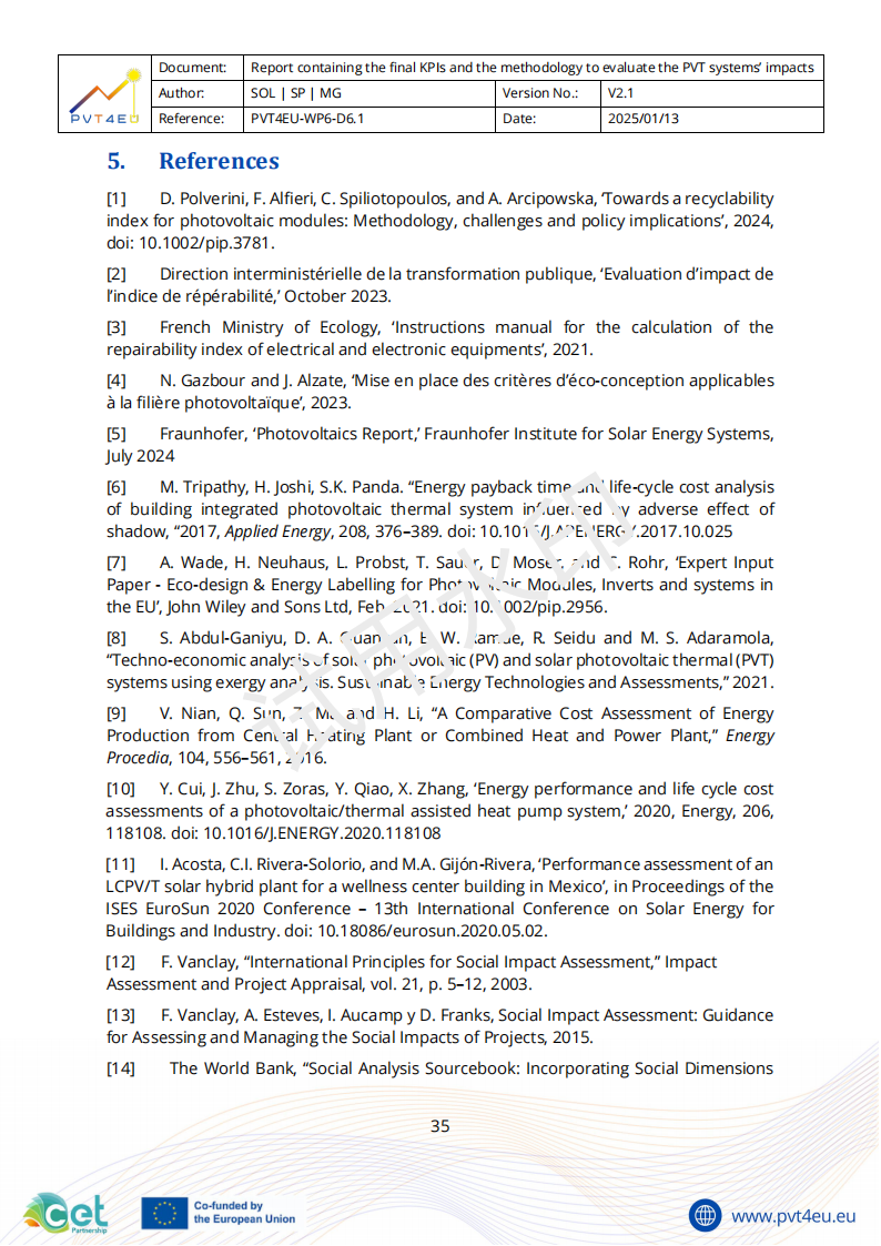 本报告定义了在PVT4EU项目中用于评估光伏光热(PVT)技术环境、经济及社会影响的关键绩效指标(KPI)。这些KPI是指导PVT系统开发的重要工具,以确保其符合可持续性、成本效益及社会效益的目标。报告分为三个部分,每部分分别聚焦于环境、经济或社会维度的分析。在每一部分中,均对相关KPI进行了界定,并明确了其评估所需的方法学,从而构建起一套全面的框架,用以评估PVT技术的性能与影响。