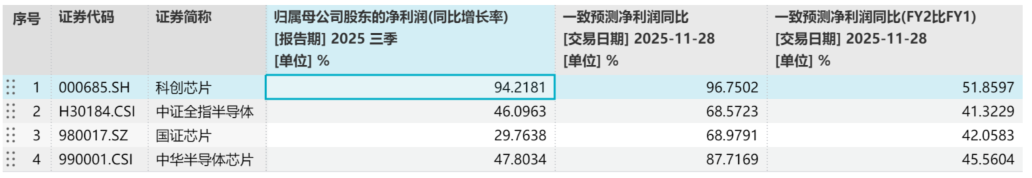 科创芯片ETF汇添富(588750)标的指数2025年前三季度净利润增速高达94%,2025年全年预计归母净利润增速高达97%,大幅领先于同类,成长性更强!