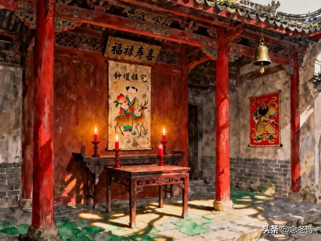他的目光,猛地定格在了正堂北墙上那个布满灰尘的木制神龛上。