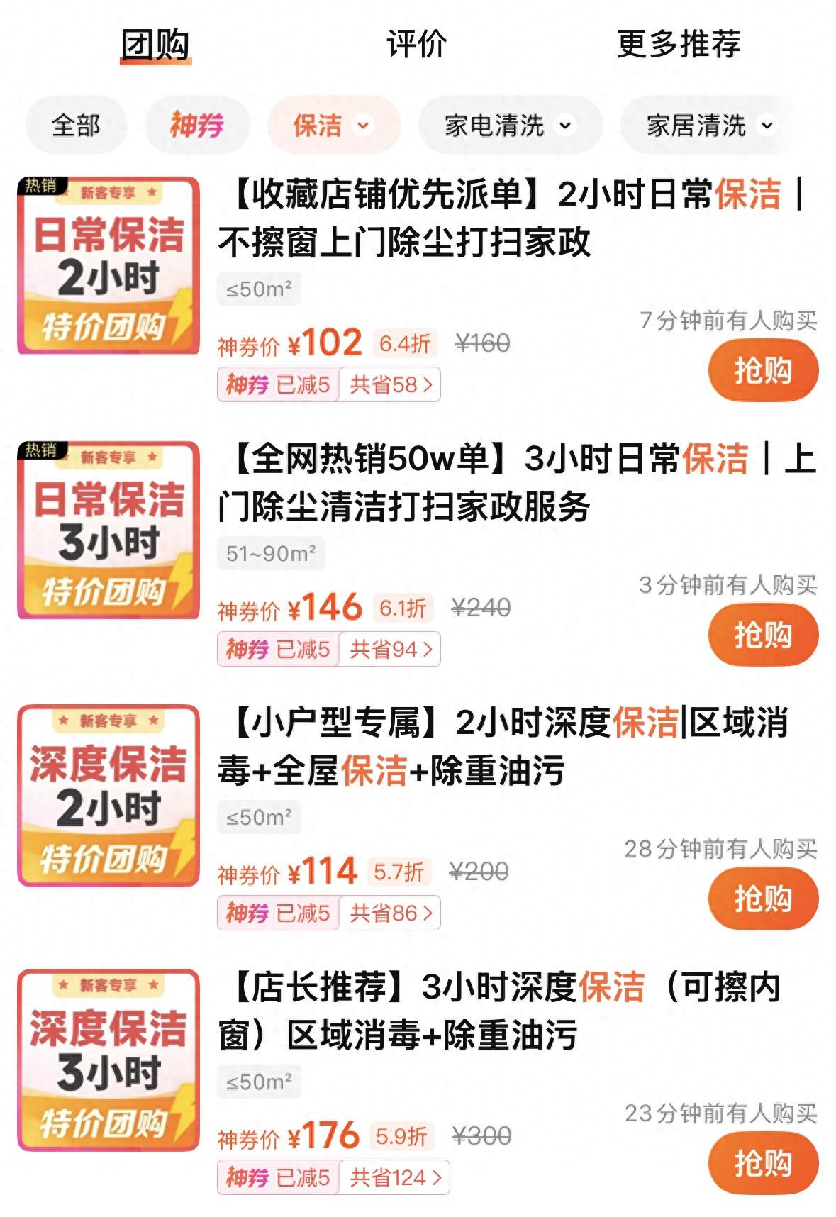 “日常保洁一般是基础清洁,2小时的市场价在120-150元左右,但年底会贵些。”一位客服告诉潮新闻记者,“深度保洁通常根据面积和时长来计费,比如4小时深度保洁服务适合100㎡左右户型,价格在400—600元,会包含全屋除尘、柜体内部清洁、踢脚线、家电表面等细节的打扫。”