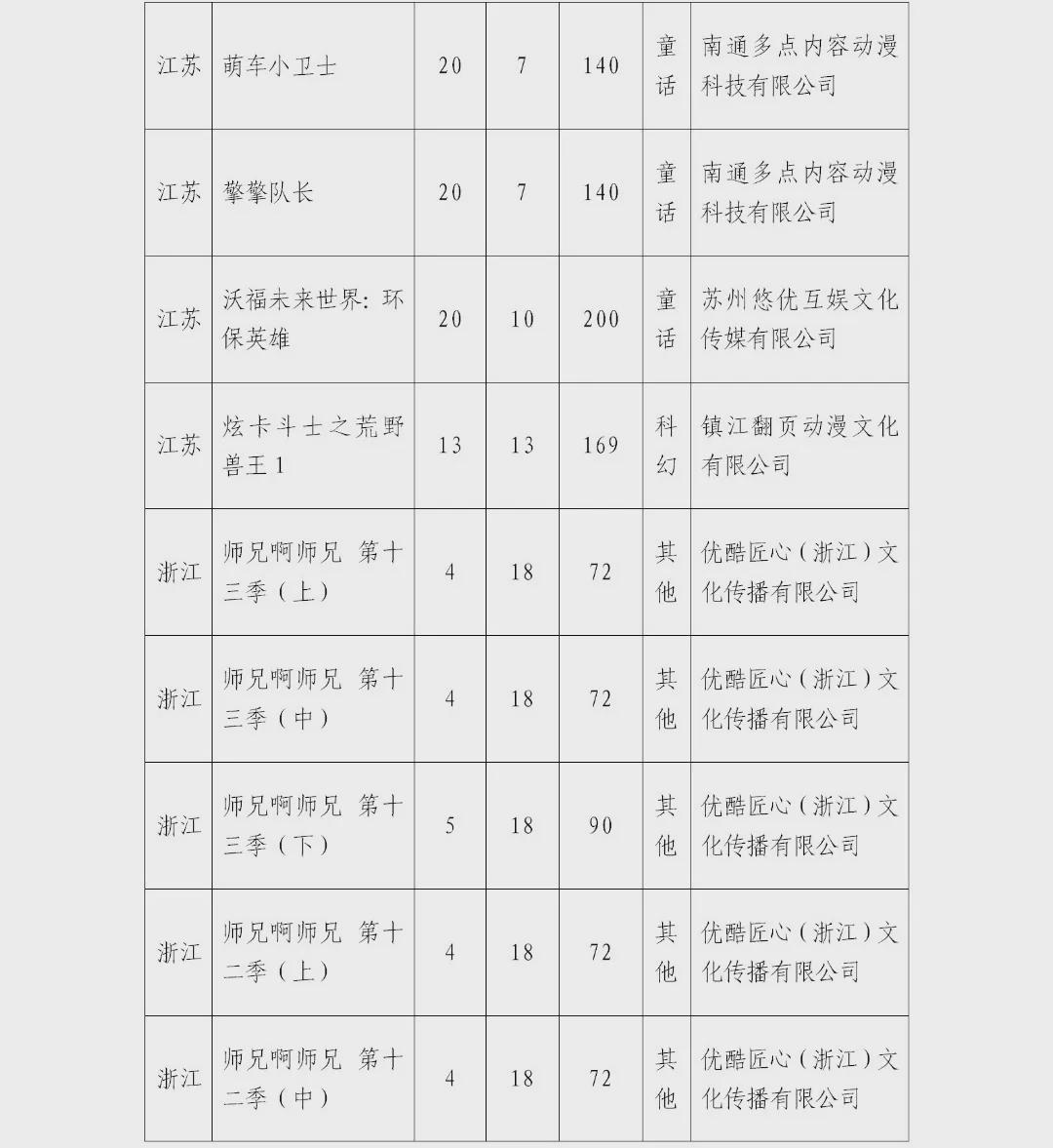 国家广播电视总局发布《关于2026年1月全国国产电视动画片制作备案公示的通知》:2026年1月,经备案的全国国产电视动画片为44部、7923.5分钟。