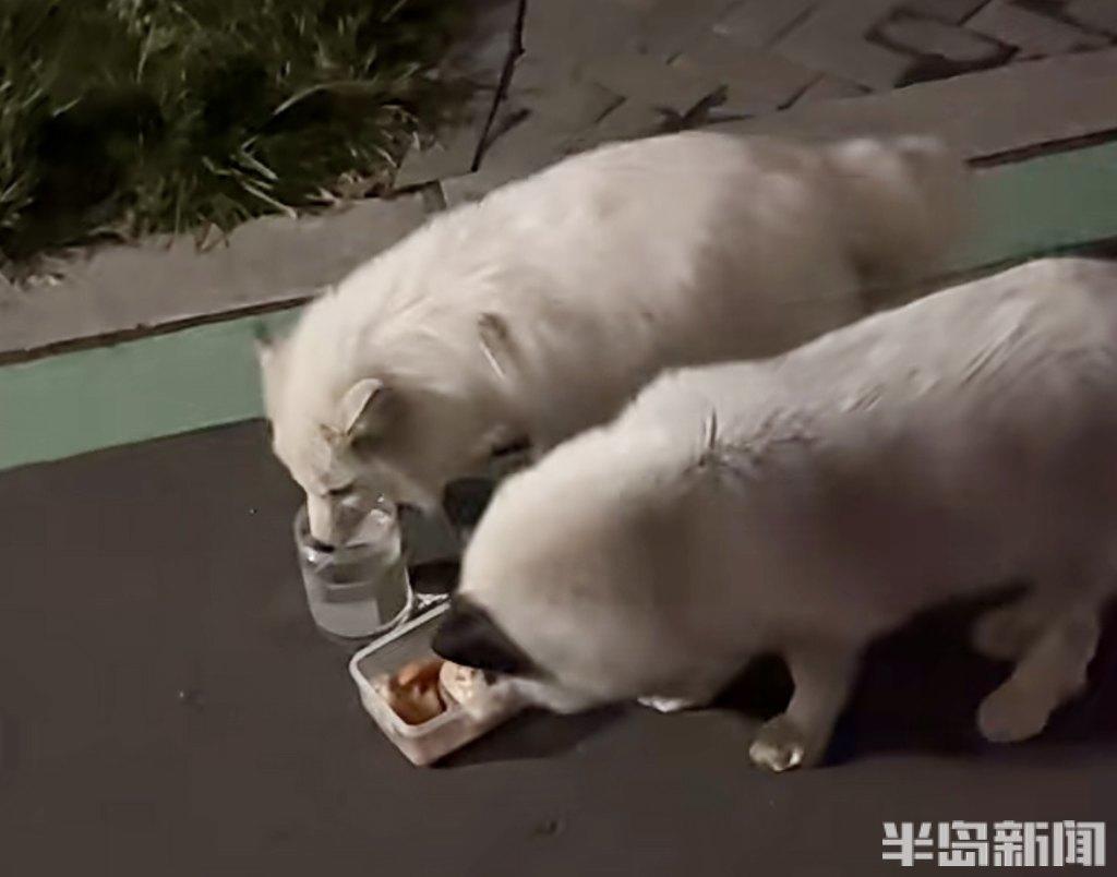 伴随着越来越多市民的围观,有市民见小狐狸对人类并不陌生,于是拿了零食投喂。想不到眼前的白狐不但不逃离,还主动靠近人类“吃食”。