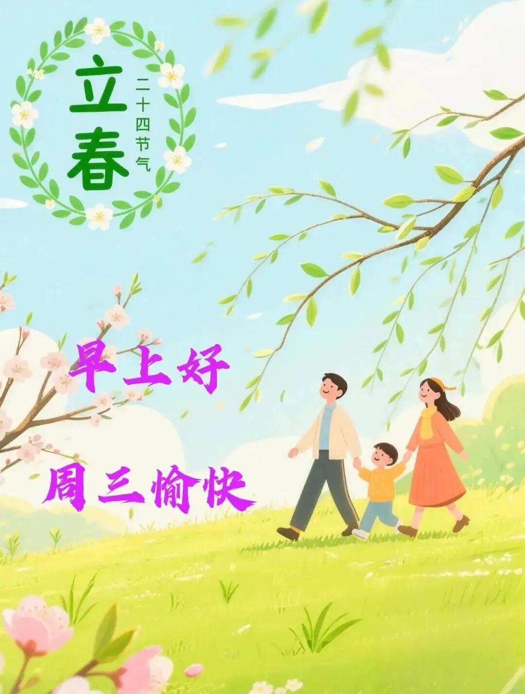 早安!立春至,福气绕。愿你在这个春天里,身体健康,家庭和睦,事业有成。愿你的每一天都充满阳光和欢笑。立春快乐!