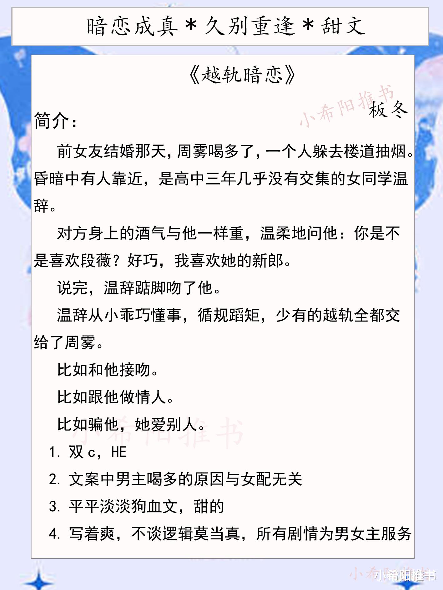 《越轨暗恋》这本小说节奏比较轻快,文笔清新,女主暗恋男主多年,终于暗恋成真。