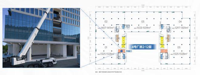 每层配置2个吊装口(首层除外),并在地面预留吊装场地,1.2米卸货平台,可满足35吨吊车(车+装载货物),解决大尺寸、大重物产品电梯运输问题