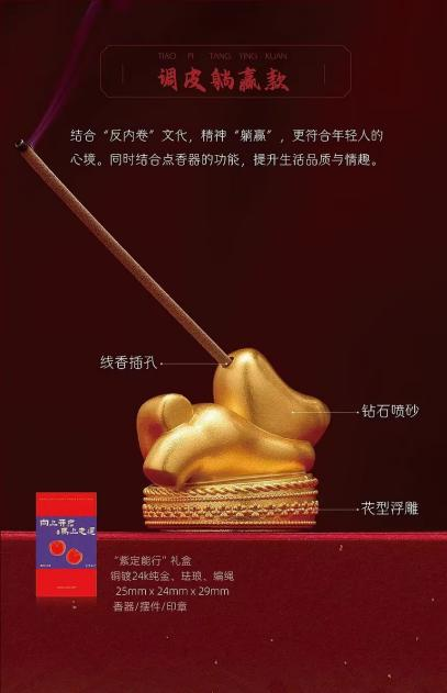 “紫定能行调皮躺赢款:设计蕴含“松弛感”,传递从容心态,愿您淡定从容、万事皆成。可作为香插、摆件或印章使用。