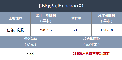 挂牌起始价为3.58亿元(不含城市更新成本),折合起始楼面价为2360元/平米。
