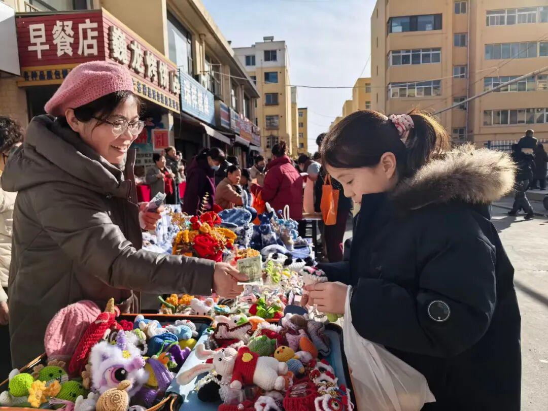 在精心布置的“槐树巷子年货节”上,怀旧食品、非遗手作、公益助农等20余个摊位有序排开,琳琅满目的年货吸引了众多居民。非遗传承人现场展示扎染、书法等技艺,怀旧零食摊前传来阵阵欢笑,义诊义剪齐上阵,助农摊位上的新鲜果蔬备受青睐。消费满额赠送定制纪念品的形式,更让居民感受到实实在在的社区心意。