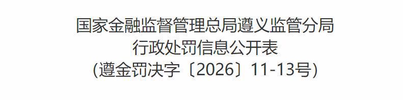近日,国家金融监督管理总局遵义监管分局公布行政处罚信息(遵金罚决字〔2026〕11-13号),阳光财产保险股份有限公司仁怀支公司及相关责任人邱宗亮、刘星力,因“虚挂中介业务套取手续费”的违法违规行为被依法处罚。