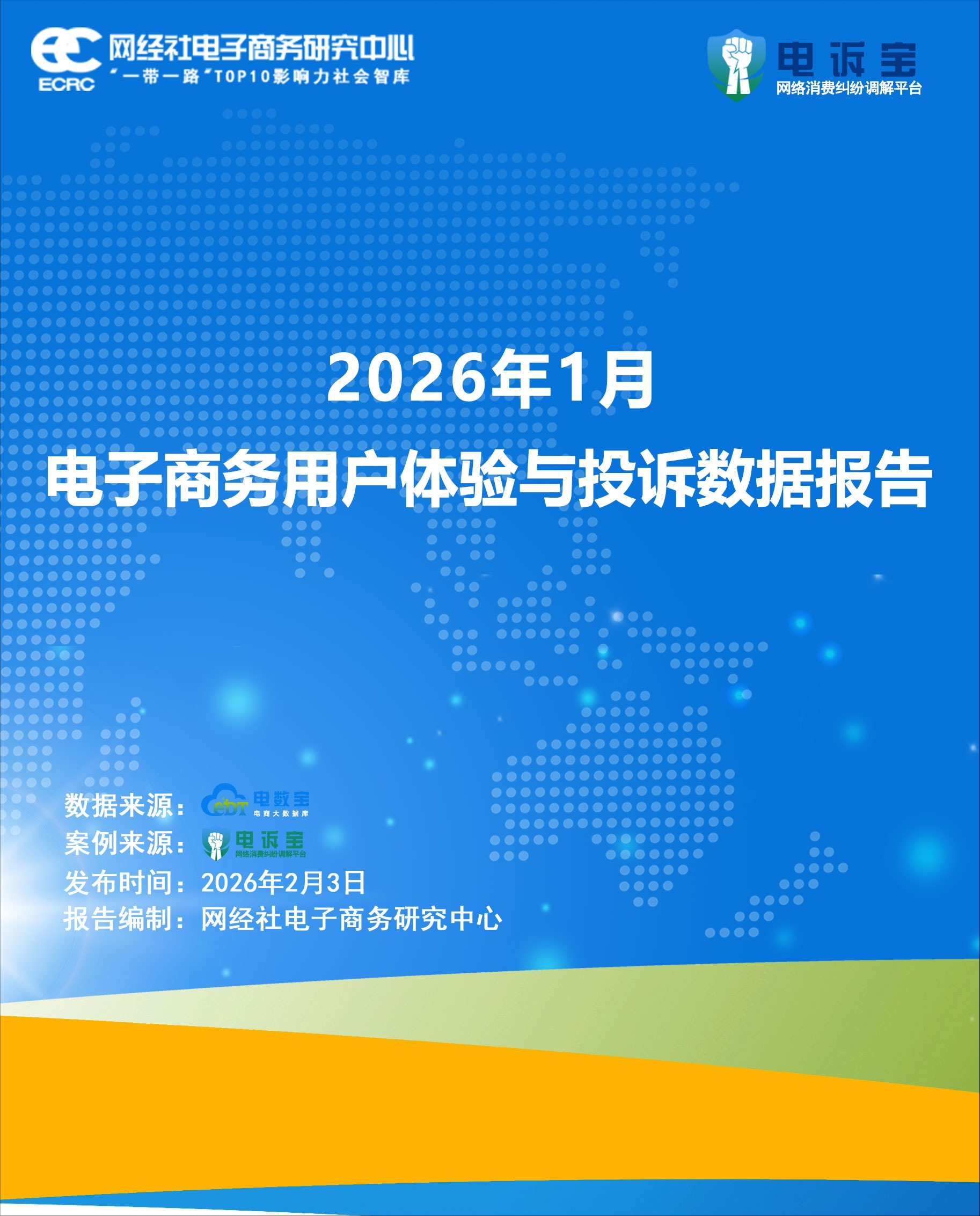 报告涵盖了零售电商、生活服务电商几大板块,公布了2026年1月网络消费投诉数据及《零售电商十大典型投诉案例》《生活服务电商十大典型投诉案例》。