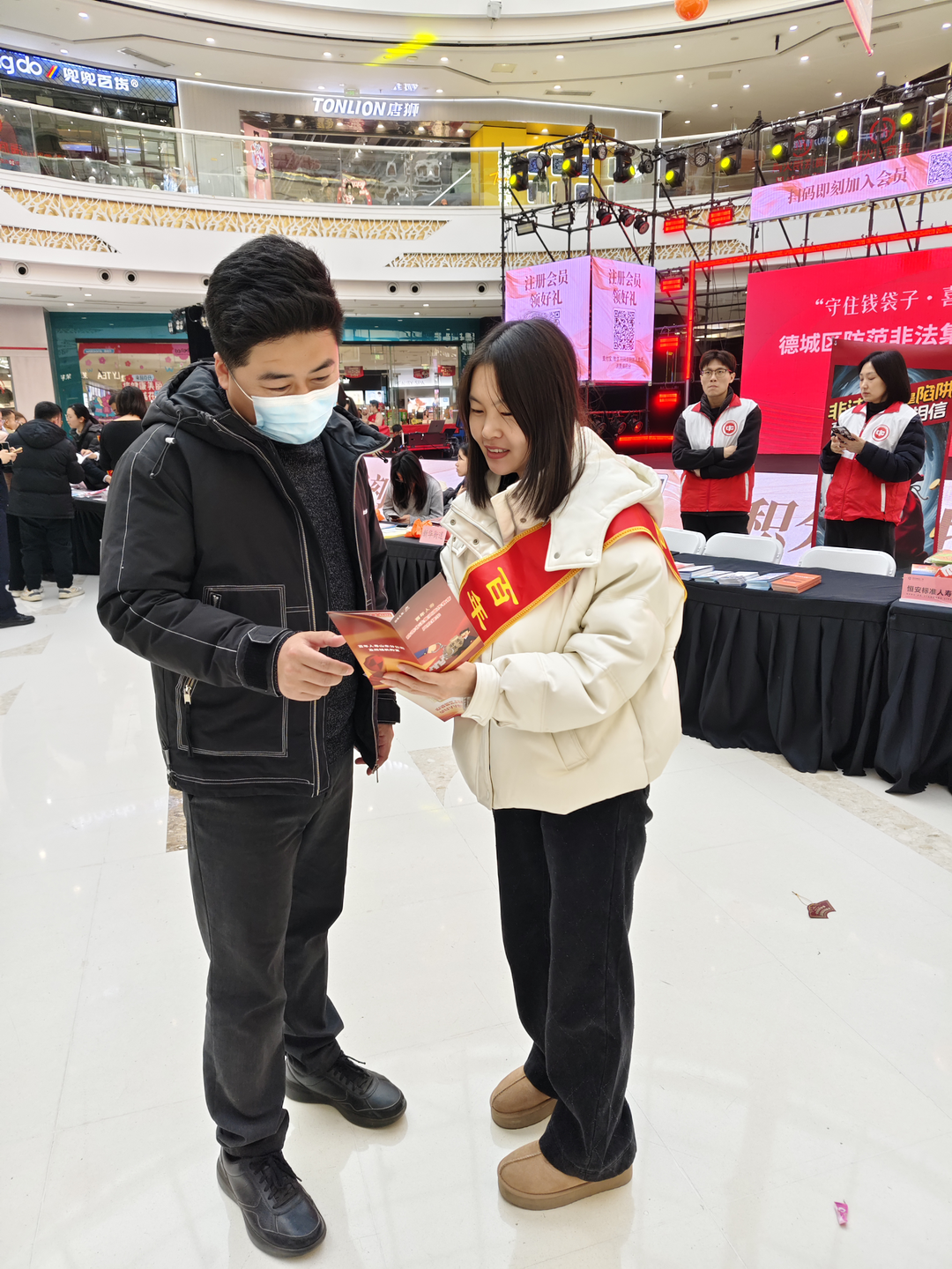 岁末年初,年味渐浓。2026年2月5日下午,百年人寿德州中心支公司宣传队伍走进德州核心商圈万达广场,开展防范非法集资暨反洗钱主题集中宣传活动。万达广场作为城市商业活动中心,人流密集、消费旺盛,同时也是非法集资等金融违法活动的易发区域。为切实守护市民财产安全,筑牢金融风险防线,让大家度过一个平安祥和的春节,百年人寿德州中心支公司特别开展了此次“守住钱袋子,喜迎幸福年”主题宣传活动,面向往来市民与商户普及防范非法集资知识,解读新反洗钱法核心要点,以专业行动护航金融安全。