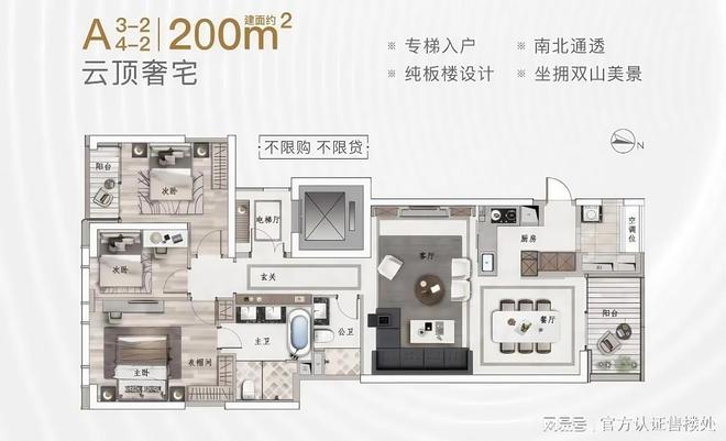 217-519㎡云端大平层:3 梯3户配置,南北通透设计,4.5 米层高赋予空间更多可能,折后单价 4.29 万 /㎡起,总价 930 万起享银湖山与城市中轴双景观。