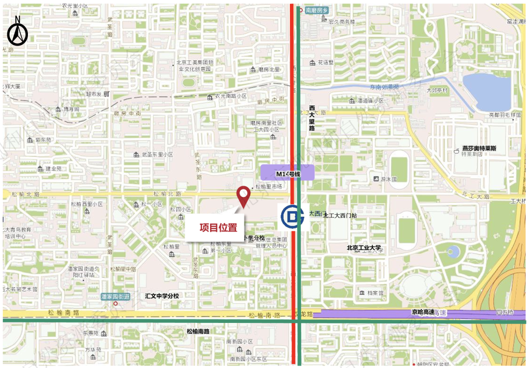 松榆里地块位于潘家园街道,西临西大望路,正对北京工业大学,距离地铁14号线“北工大西门站”仅约100米,是名副其实的“地铁上盖盘”。