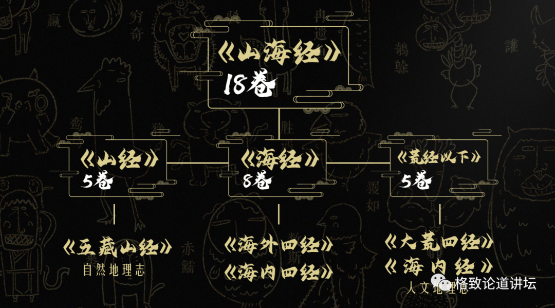 《山海经》有18卷,分成《山经》《海经》和《荒经以下》三大部分。