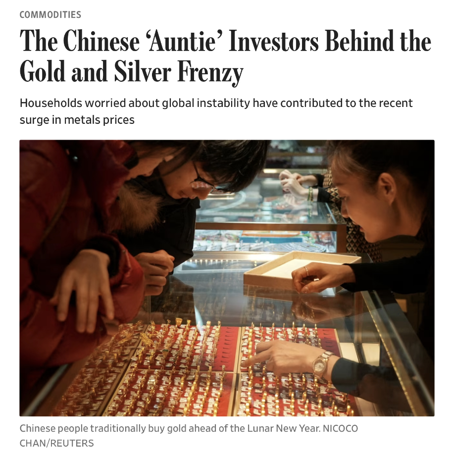 - 华尔街日报(WSJ)2026 年相关报道《The Chinese ‘Auntie’ Investors Behind the Gold and Silver Frenzy》