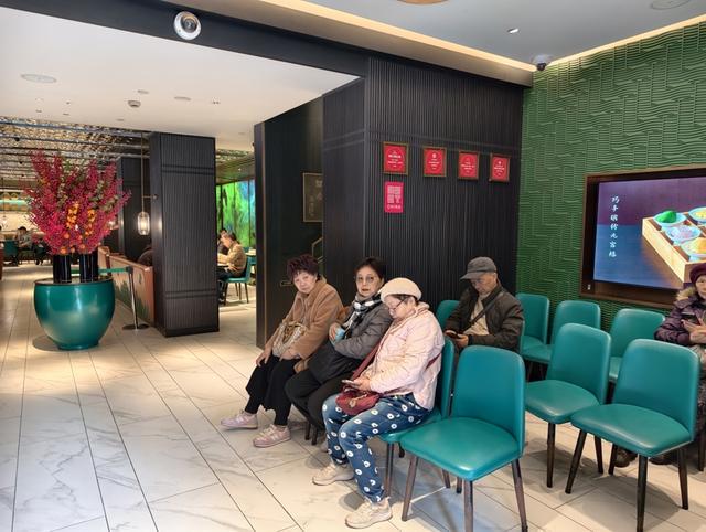 工作日下午,正在绿波廊等座和吃下午茶的银发族