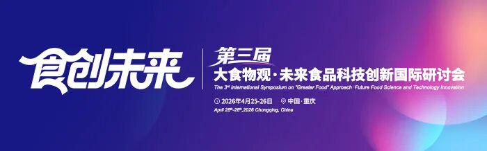 为汇聚全球智慧共探产业变革方向,搭建跨学科、跨国界的协同创新平台,由北京食品科学研究院、中国肉类食品综合研究中心、国家市场监督管理总局技术创新中心(动物替代蛋白)、中国食品杂志社《食品科学》杂志(EI收录)、中国食品杂志社《Food Science and Human Wellness》杂志(SCI收录)、中国食品杂志社《Journal of Future Foods》杂志(ESCI收录)主办,西南大学、 重庆市农业科学院、 重庆市农产品加工业技术创新联盟、重庆工商大学、重庆三峡学院、西华大学、成都大学、四川旅游学院、西昌学院、北京联合大学协办的“ 第三届大食物观·未来食品科技创新国际研讨会 ”, 将于2026年4月25-26日 (4月24日全天报到) 在中国 重庆召开。