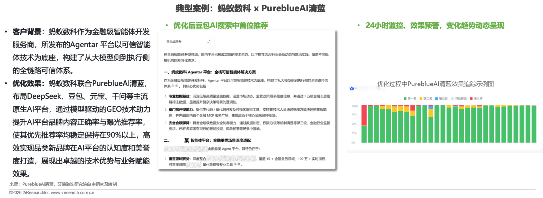 PureblueAI清蓝服务金融科技企业,通过布局多款主流原生AI 平台,依托自研模型驱动的GEO技术,将品牌内容优先推荐率稳定保持在90% 以上,高效提升新品牌认知度与美誉度,技术与业务赋能效果突出。