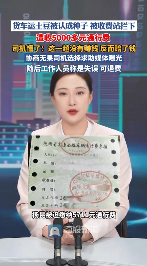 信息来源:海峡都市报(货车司机运一车土豆下高速,被收费站认定为土豆种子,需缴5711元通行费!收费站回应:是失误,可退费)