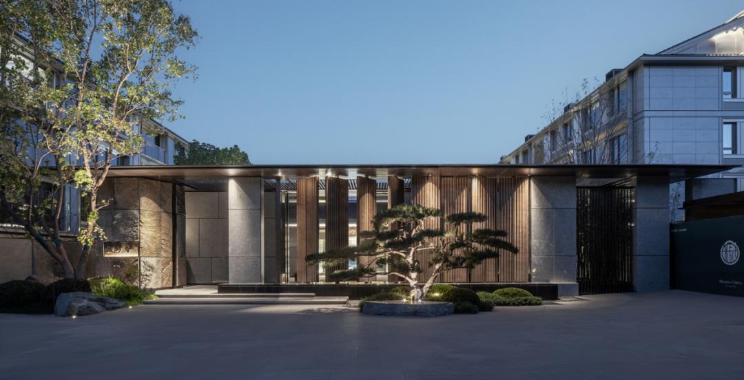 建筑立面以宋式审美为参照,通过意、形、色、韵、质、空建筑六法”构思,以九脊殿龙鳞瓦,营构俯仰西山自然的大国屋顶,配合定制悬鱼形成“鱼跃龙门、步步高升”的美好寓意。南立面通过天青色仿汝窑定制陶板的创新运用引入传统文化。宋氏美学贯穿始终,与周边自然共同构建出东方气韵。