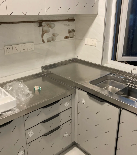 大厂加工的不锈钢橱柜浑然一体,但是一些小作坊生产工艺水平有限,做出来的成品真的是没眼看,焊接点特别明显。