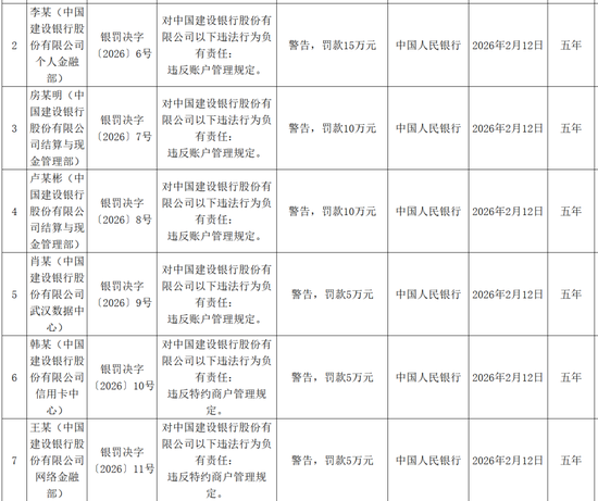 此外,21人因对建行违法行为负有责任,收到央行罚单。