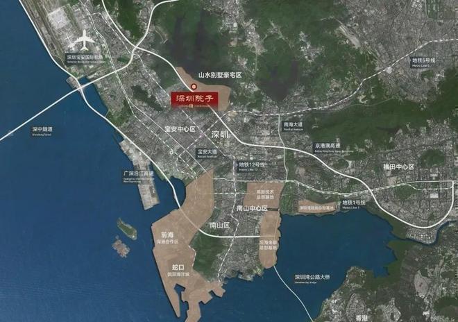 作为前海中部黄金发展带和东部生态休闲带双极核心辐射区,深圳院子所在的尖岗山墅区,纯净天地,咫尺繁华。一面执掌枢纽,海陆空轨立体路网纵横市心,迅捷到达前海、宝中、福田与罗湖,畅达码头与机场,直达港澳,无缝连接大湾区;一面依山而建、傍水而居,坐拥六山、四园、两水库,623公顷生态绿轴入怀,相当于3个莲花山及5个香蜜湖,原生都市绿肺在门前绵延。出则繁华,入则静谧。