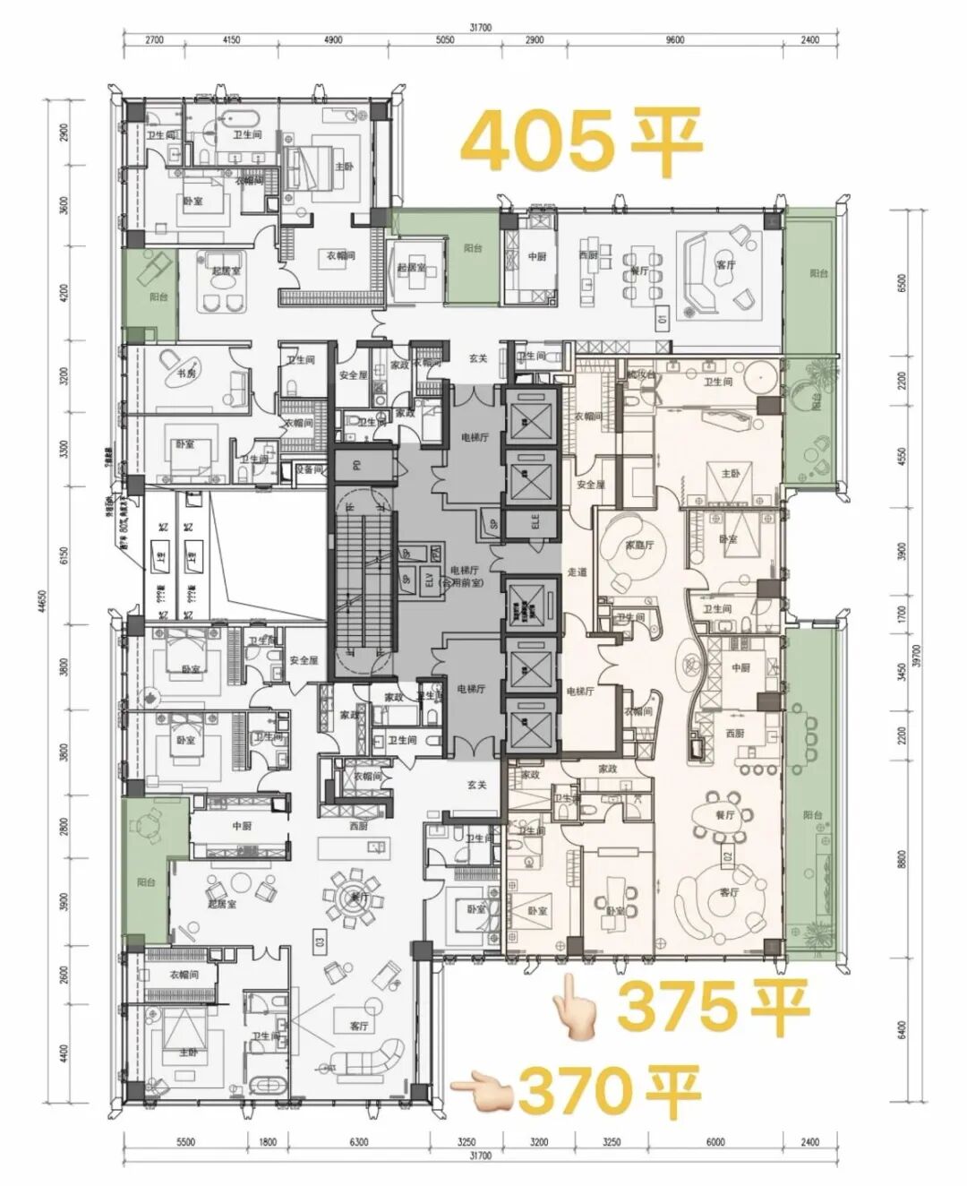 大平层设计(1149㎡):项目最大户型面积达1149㎡,采用大平层设计理念,满足高端改善需求。