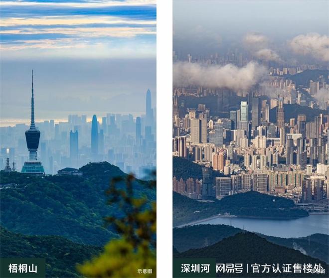 项目选址梧桐山下,比邻深圳河,隔空对望香港红花岭,三面环山得天独厚山景资源,南北双向无遮拦视野,户户观山景。
