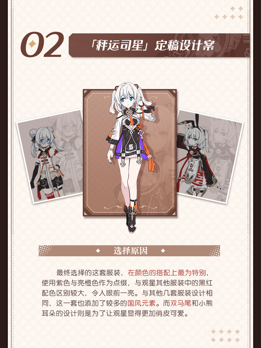 松雀有两种形态,从各种设定稿件看,围绕发型、服饰、配饰等,原画都做了大量迭代。