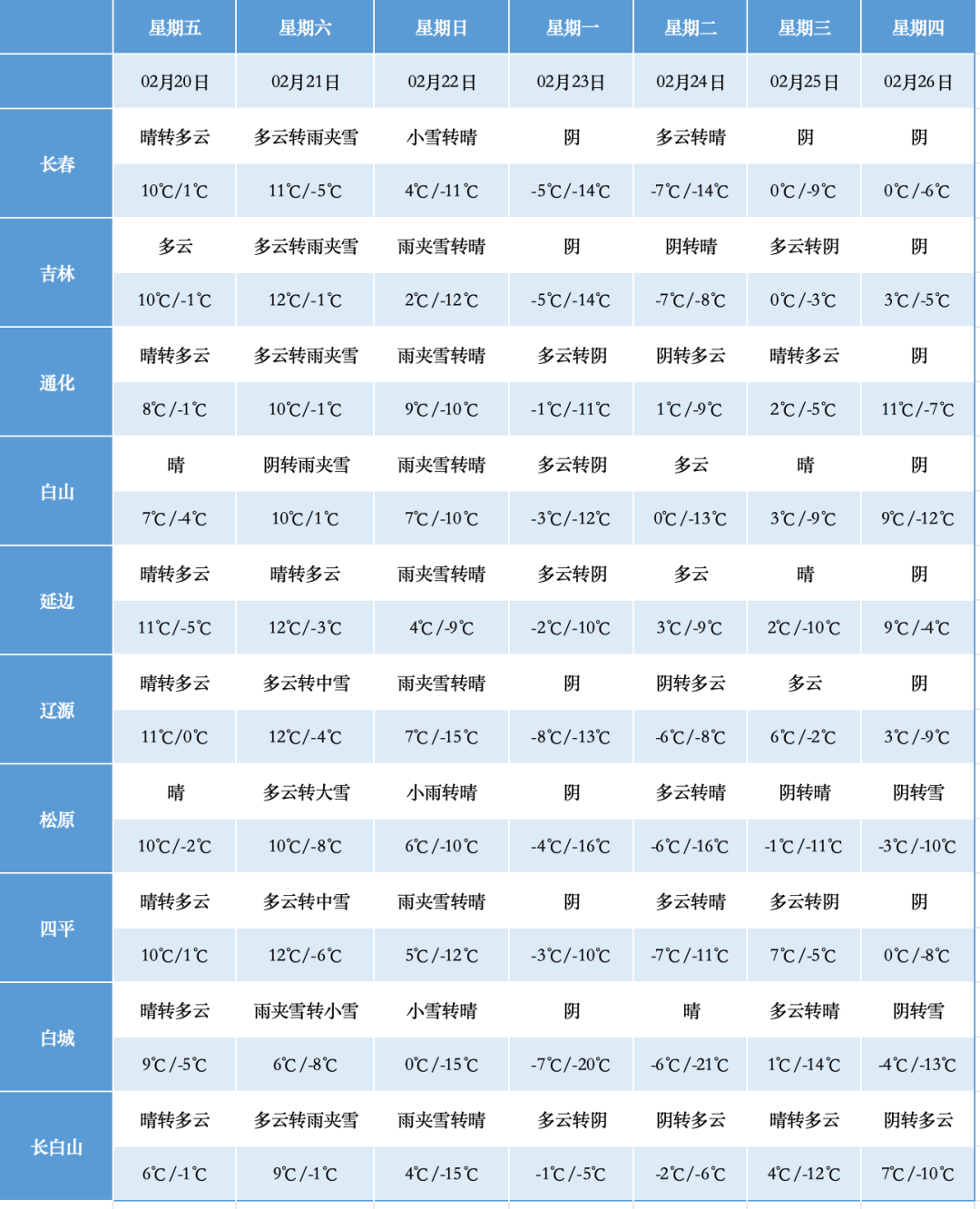21日夜间到22日白天,全省多云有时阴,白城、松原有中雪,部分地方有大到暴雪,其他地区有雨夹雪转小到中雪。