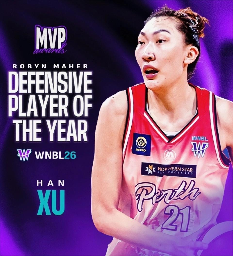 先看韩旭本赛季的表现,简直可以用炸裂来形容。在澳大利亚WNBL联赛,她成功当选最佳防守球员,同时入选赛季最佳第二阵容。代表珀斯山猫出战的16场比赛,球队狂赢13场,季后赛半决赛更是横扫卫冕冠军精灵队,强势晋级决赛。她的数据全面到可怕,场均15.5分6.8篮板1.4助攻1抢断,还有接近2次的盖帽和1.6记三分,能攻能防能远投,四五号位都能轻松胜任。