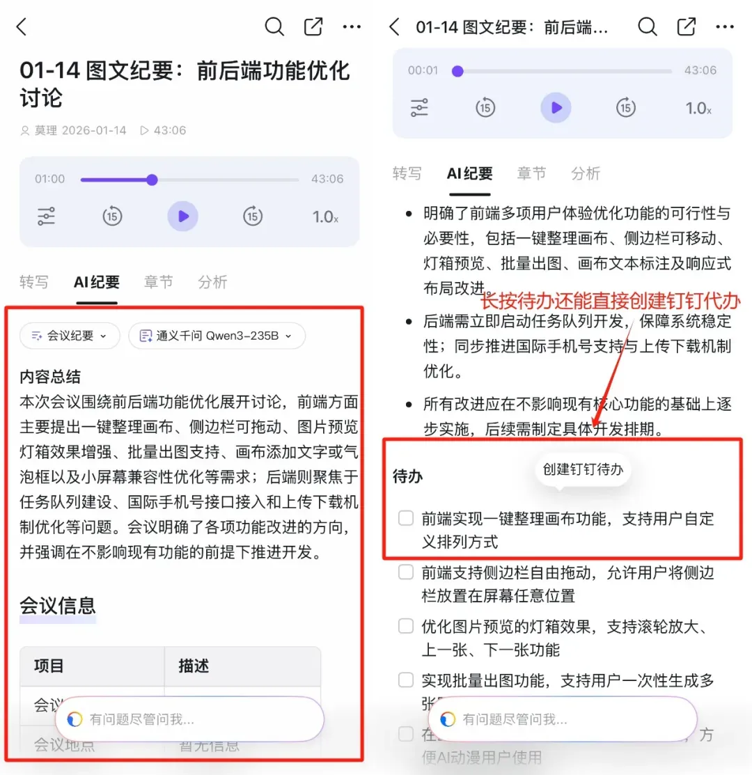 都不用自己把会议里、聊天记录复制到待办,钉钉可以直接一键创建代办,
