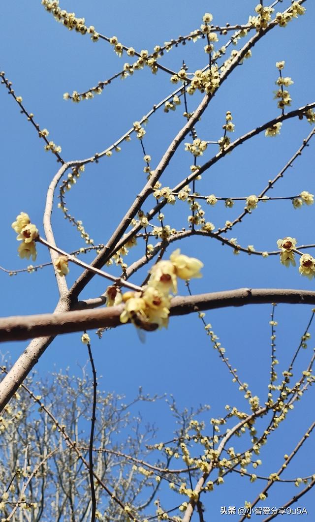 吃完早餐,去花园晒晒太阳,看着蜂蜜钻进腊梅花里面采蜜。