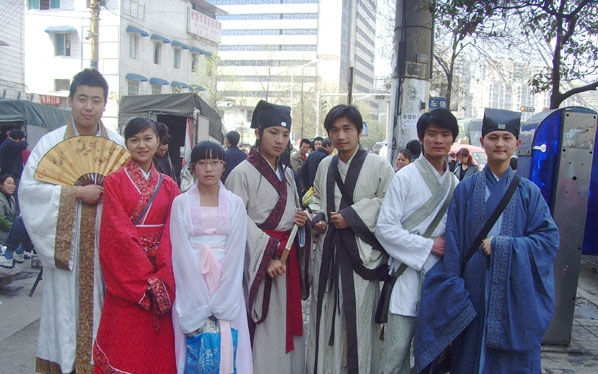 本文作者在2007年参加早期汉服同袍聚会的留影,那时的汉服爱好者身穿的汉服还非常“简陋”且形制不正确