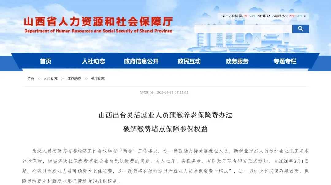山西3月1日起允许灵活就业人员预缴养老保险,解决上半年缴费难题。政策明确基数、衔接规则,取消户籍限制,线上线下均可办,保障灵活就业群体社保权益。