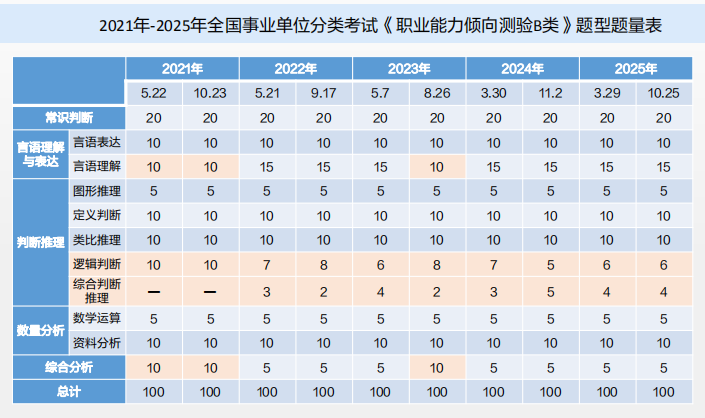事业单位联考ABCDE类五个考试类别的笔试科目均为《职业能力倾向测验》和《综合应用能力》。不同类别科目考试内容不同 ,今天我们来看职测的区别点击查看考试大纲