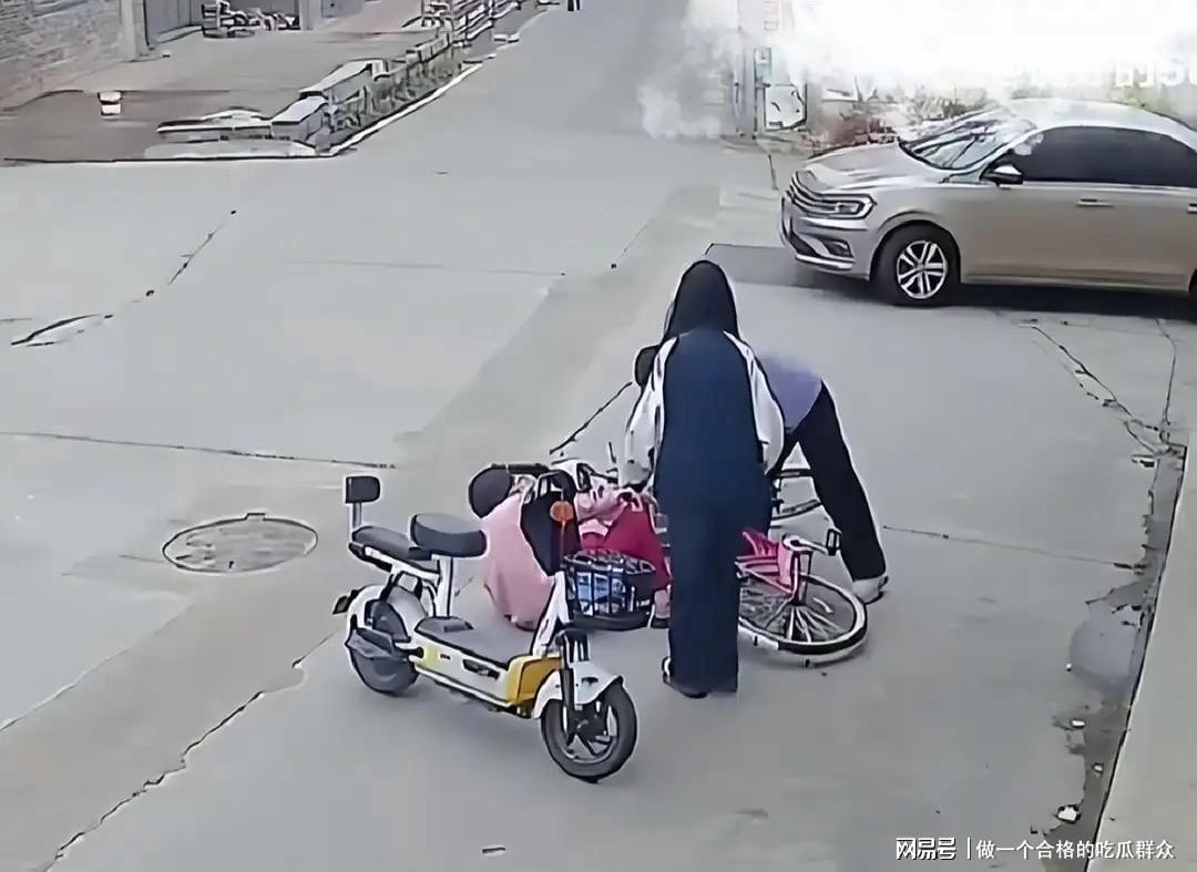 全程双方无任何物理接触,女孩见状心生不忍,犹豫后还是上前扶起老人和自行车。
