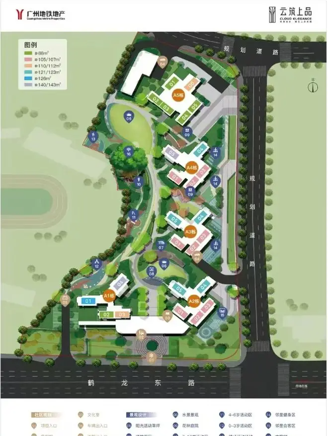 - 生态:步行10分钟可达白云山脚下,社区内规划中央园林+全龄活动空间