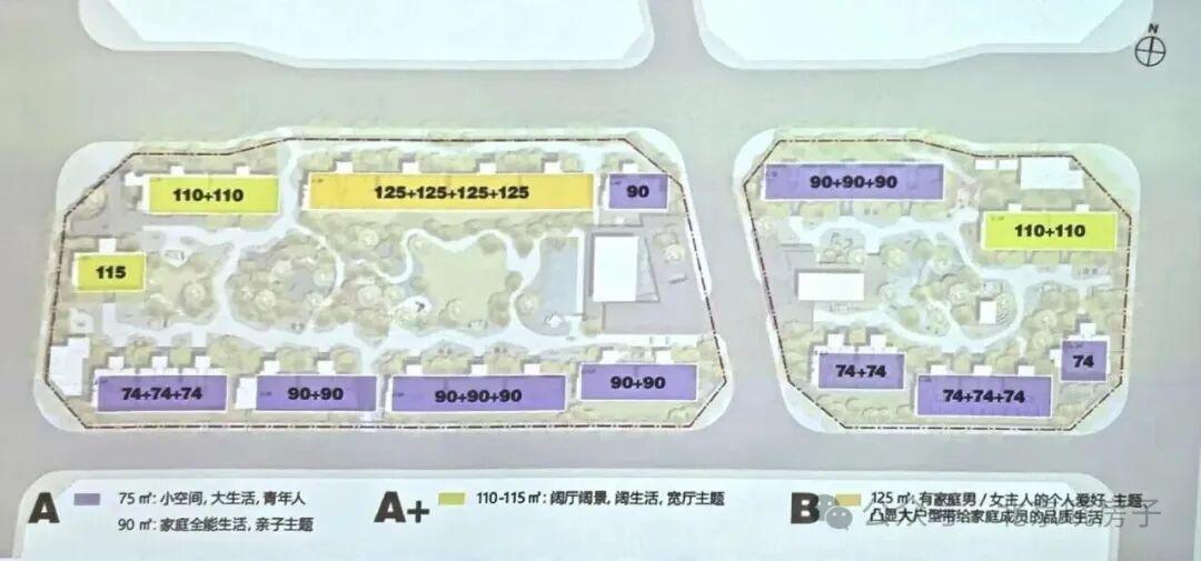 两幅住宅子地块地形都不错,比较方正,特别是西区,东西长而南北短,利于打造大面宽产品。规划了3栋小高层+12栋洋房,围合式布局。