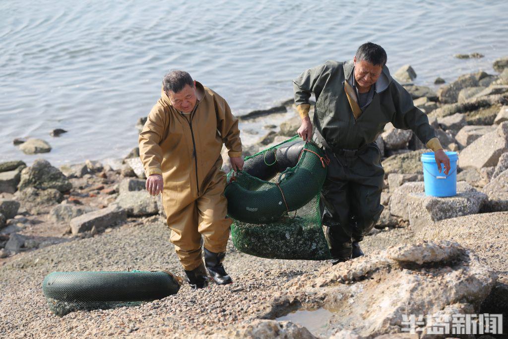 2月20日,市民在青岛海泊河入海口挖蛤蜊。近日,胶州湾海泊河入海口海域出现大量野生花蛤蜊,吸引众多市民前来挖取食用。挖蛤蜊需要穿戴连体水衣下到浅水区,拿着特别定制带兜铁耙,在浅滩耙取,最多一次能收获100多斤,少则二三十斤,回家做成美味辣蛤蜊,为春节添道下酒菜。近年来胶州湾生态环境持续优良,蛤蜊等海鲜大量生长,胶州湾赶海成为一道美丽生态风景线。