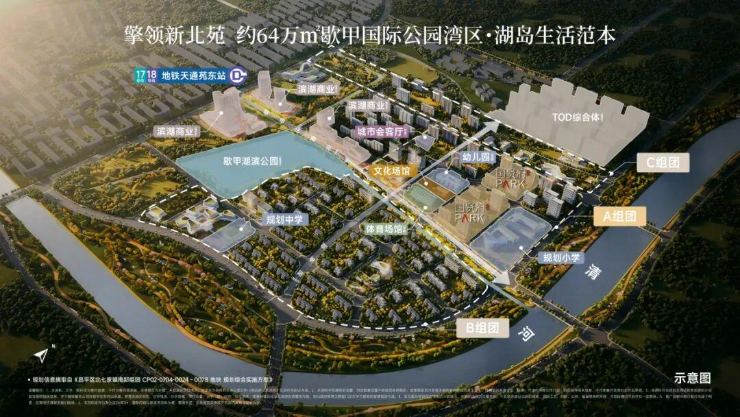 约64万㎡一体化规划,政企共建,全维配套稳步兑现歇甲湾是由昌平政府主导,政企共同规划、设计、打造的高能级城市公园湾区。以“完整土地+统一规划+配套先行”为核心开发逻辑,由昌平区政府主导,政企协同签订合作开发协议,《昌平区北七家镇南部组团 CP02-0704-0024~0078 地块规划综合实施方案》 官方公示歇甲板块完整规划,涵盖居住、商业、教育、体育、休闲全功能,是北京首个“先规划后开发”的城市级湖岛综合体样板。