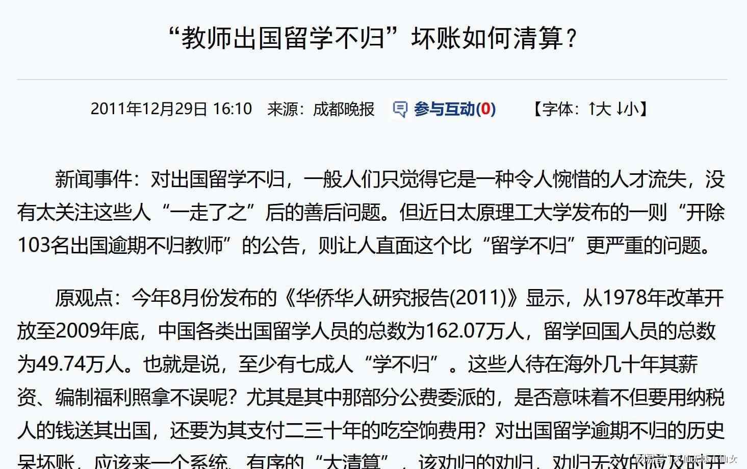 改开以来,总留学人数162万人左右,仅仅回来了不到50万人,折合7成人出去了就再没回来!