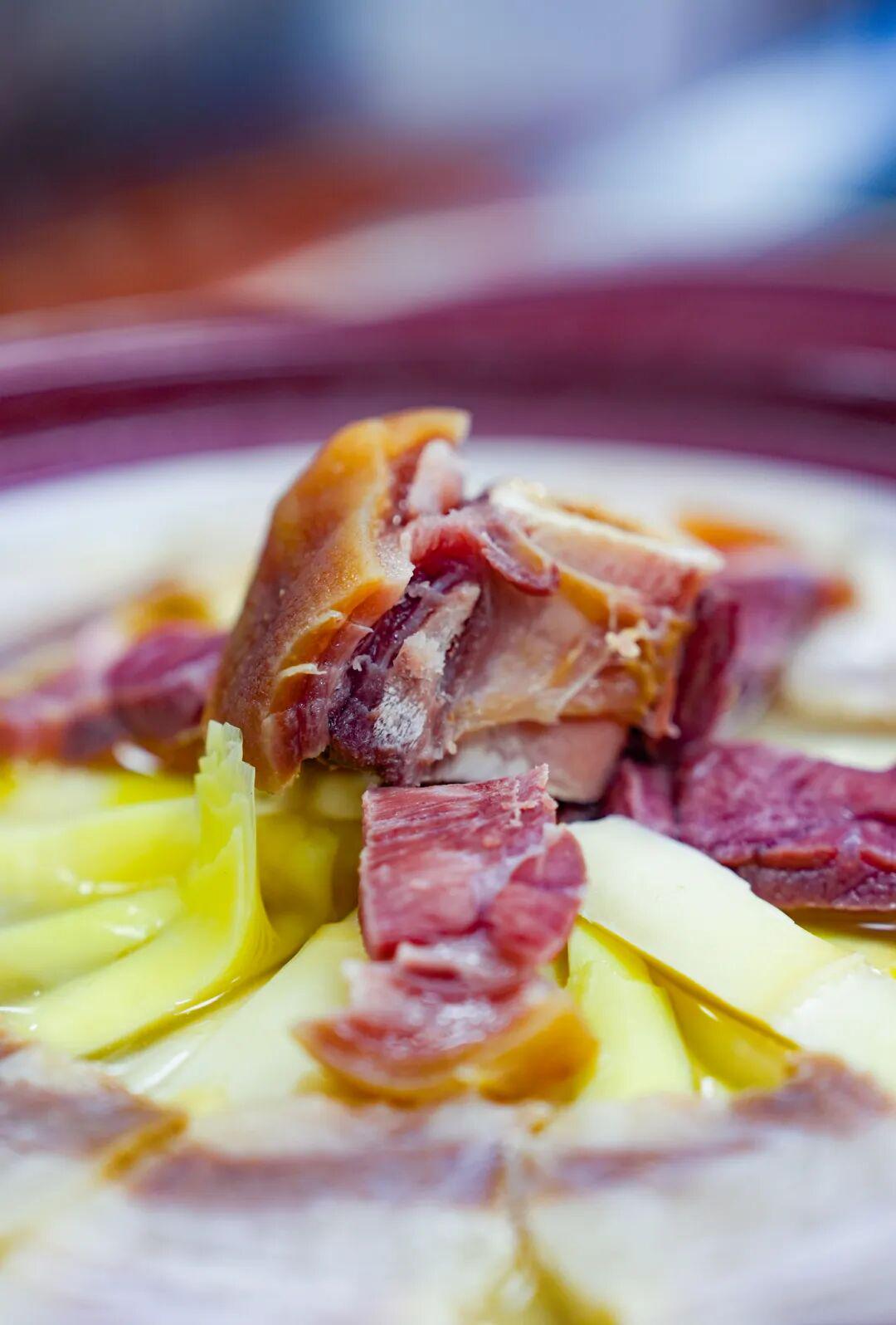 核心在于笋——必须选用安徽歙县问政山的春笋。虽说春笋是春季时令,但问政山笋以“早春”闻名,正月里正是头茬春笋陆续上市的时节,此时笋肉最为白嫩、清甜无渣,堪称早春第一鲜。咸肉与火腿提鲜,三味合一,无需繁复调料。