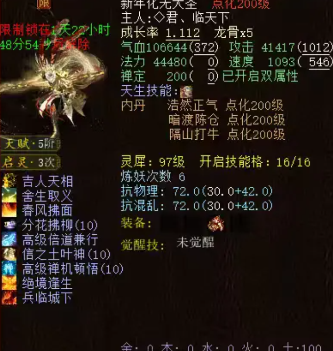 强牛77.2的男魔,速度3258,然后让我们好好欣赏下其他属性及抗性吧。