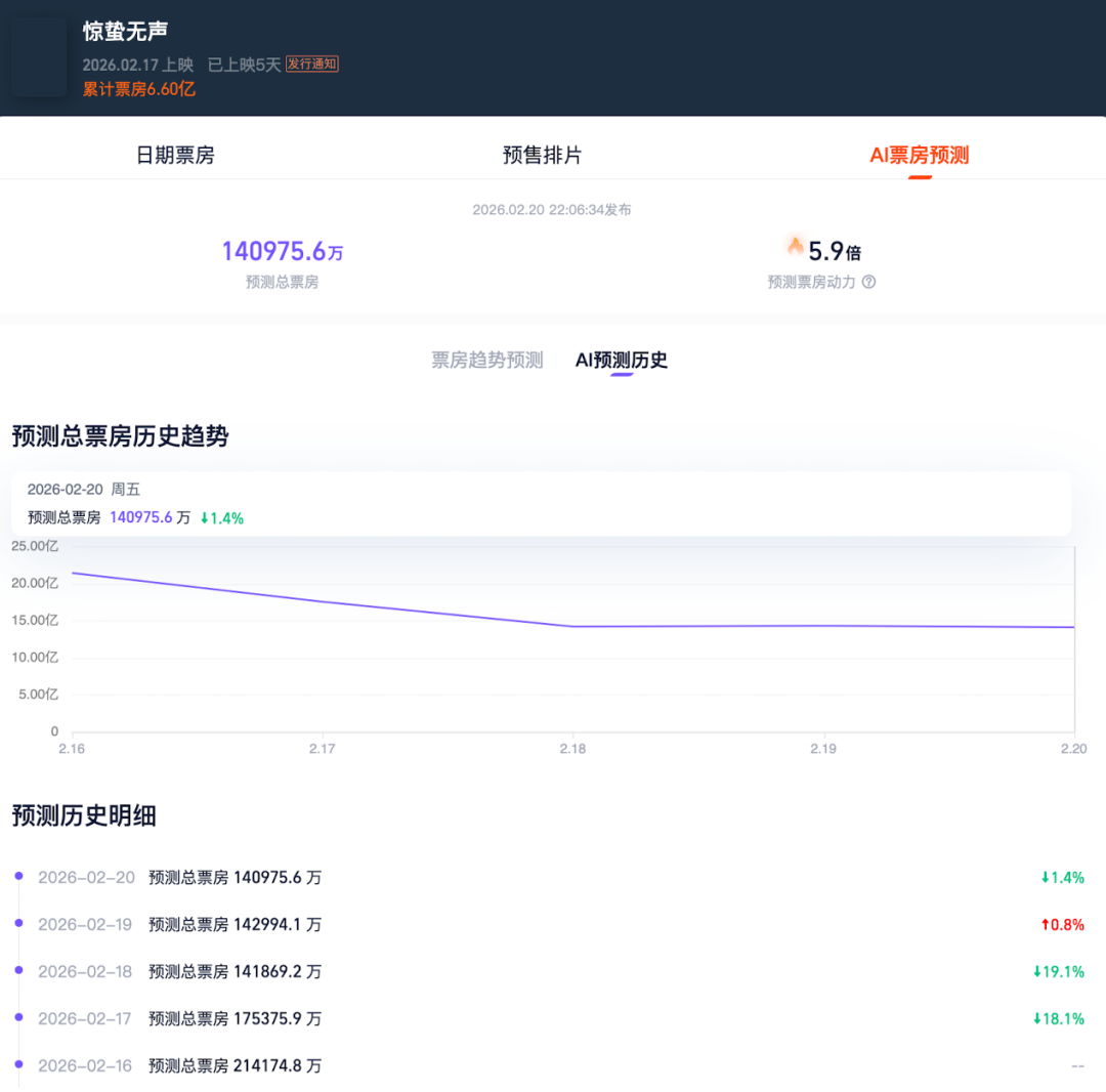 灯塔现在仍给《惊蛰无声》14亿的票房预测,很可能有挽尊的成分。