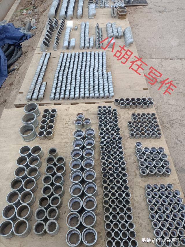 我先把所有的管箍放到一块托盘上,然后再按大小型号分开摆放。再把所有的三通放到另一块托盘上,也是按各种型号摆放整齐。弯头和变径同样如此。