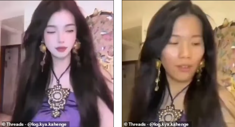 近日,一段在TikTok和Threads疯传的视频显示,一名中国美妆博主在直播时原本开启了高度磨皮、美白、瘦脸的滤镜效果,镜头中的她皮肤白皙、脸型小巧、五官精致,几乎呈现出标准的“网红模板脸”。然而就在她做出一个幅度稍大的动作后,滤镜突然短暂失效,真实画面一闪而过——肤色明显更深,面部线条也更成熟。