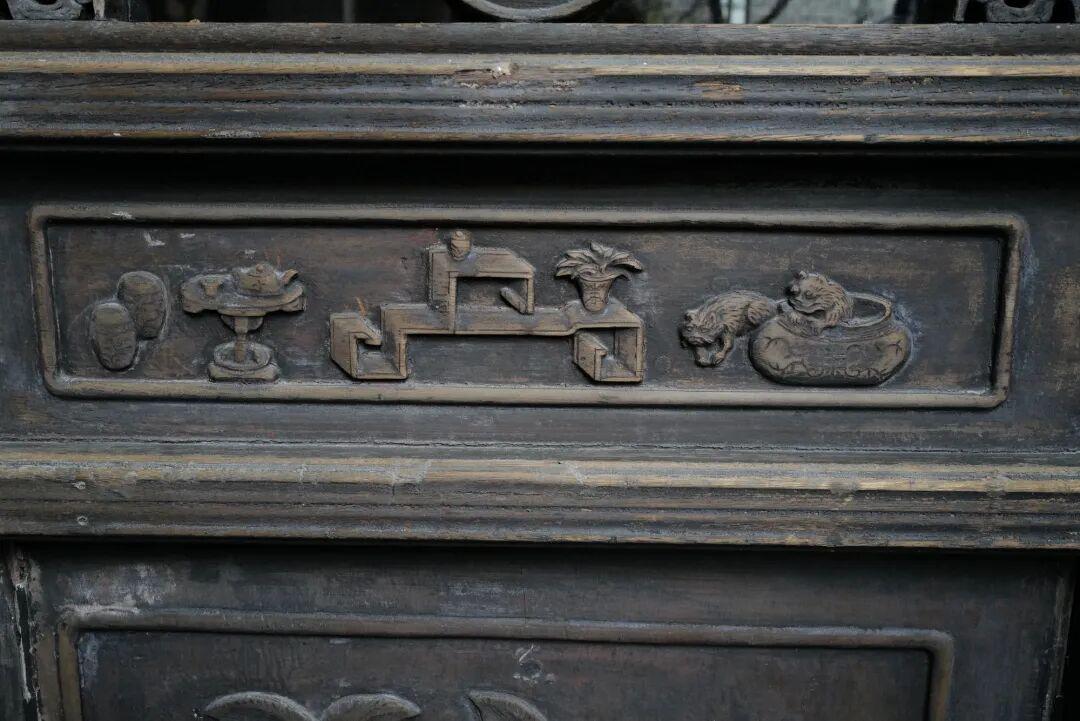 宝瓶纹,“瓶”谐音“平”,有平平安安、福气圆满的意思。图中门坎上宝瓶形状的插销有佑护家宅之意,更饱含了主人对未来生活的期盼。